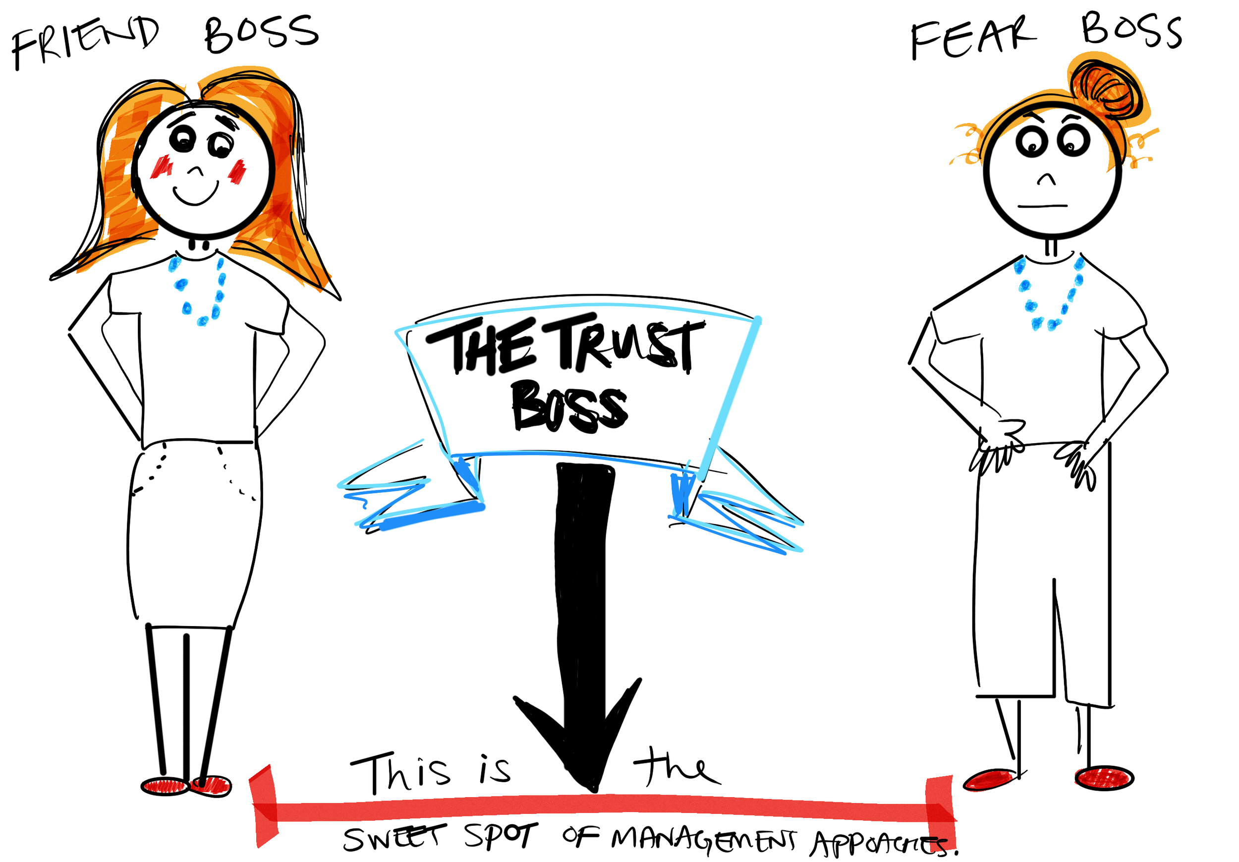 So, what’s the sweet spot of management approaches? What’s between the Friend and Fear Boss? It’s learning how to be a Trust Boss.